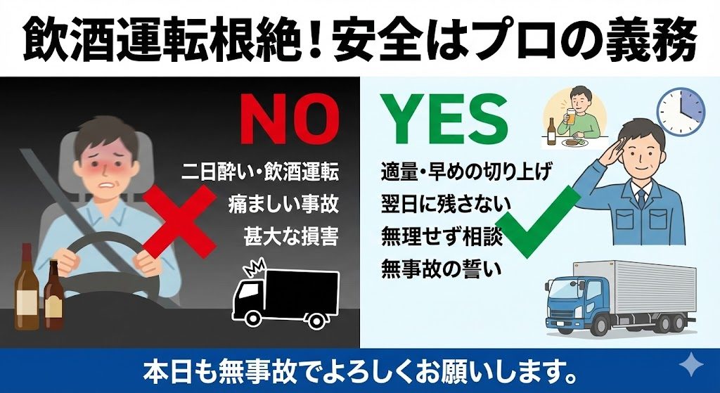 本日も無事故で、お酒との付き合い方も改めよう