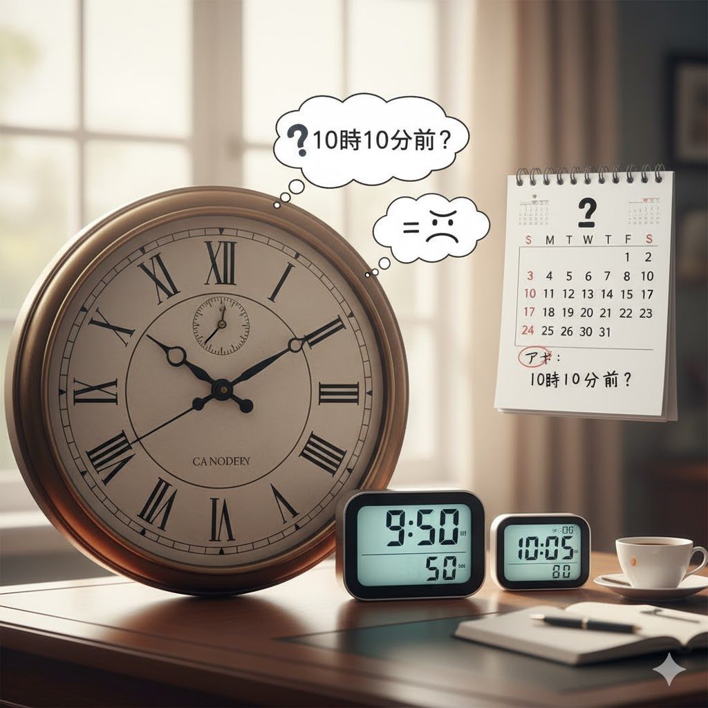 お分かりでしょうか?相手は10時10分の少し前イコール10時5分頃と捉えていたんです。