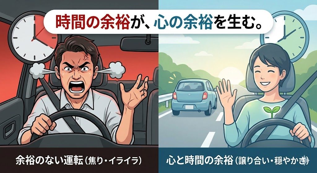 今回の出来事で私が思った事は、時間の余裕を持って、気持ちの余裕も持ことの大切さ。