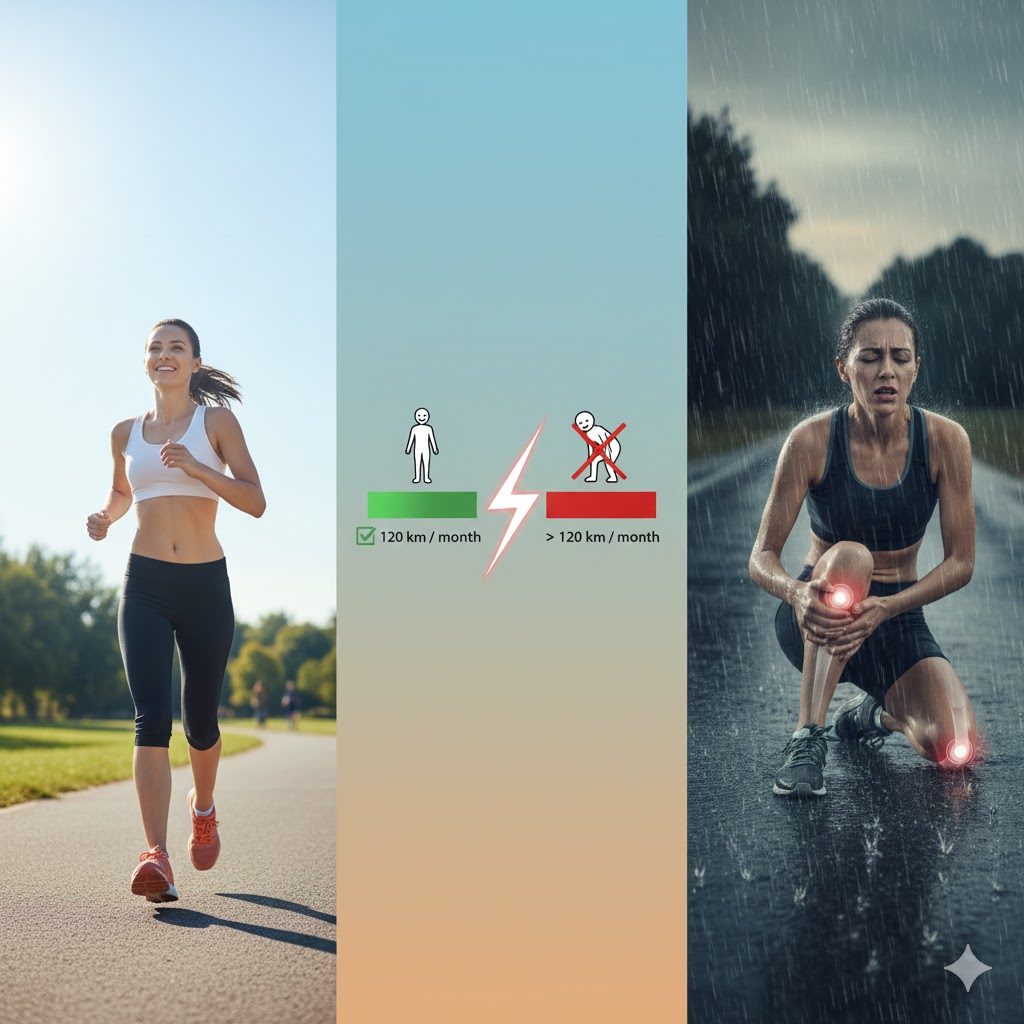 ある研究によれば、1カ月の間に120㎞前後走る人は健康体である割合が一番高いそうですが、120㎞以上走る人は膝の痛みややせすぎ、オーバーワーク、免疫力の低下といったケガや病気のリスクを高めてしまっている人が増えるという結果が出たそうです。