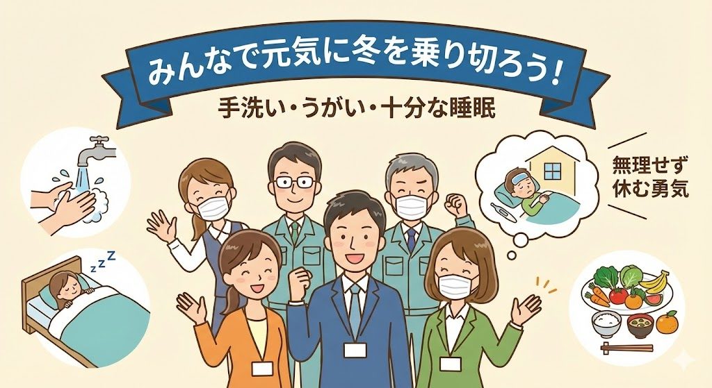 また、体調が悪いと感じたら、無理をする前に職場に相談し、休むことも大切です。自分の体を守りながら、周りの人への感染拡大を防ぎ、職場全体の健康を守ることにも繋がります。
