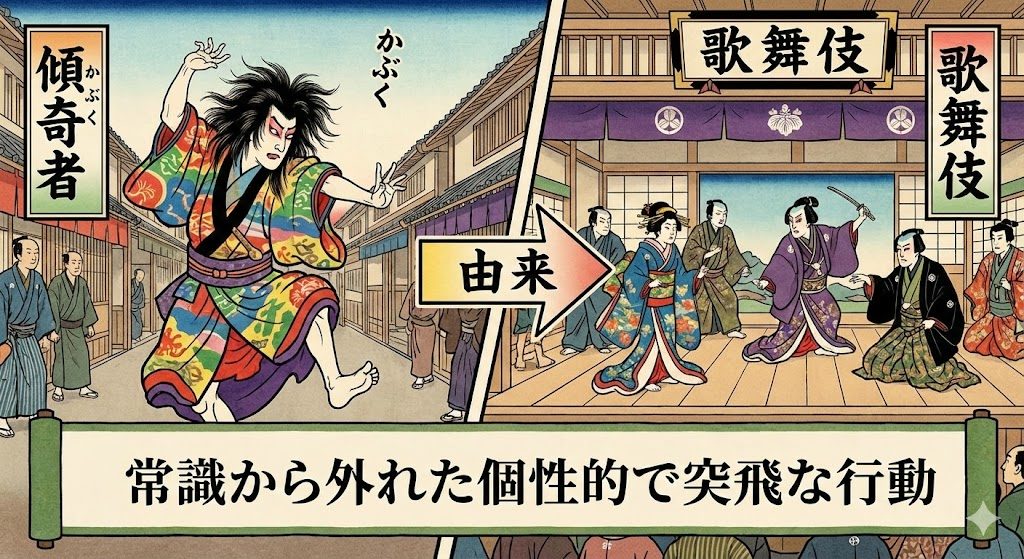 それはかぶくという動詞で常識から外れた個性的で突飛な行動をするときに使われる動詞でこの言葉通りな人のことを傾奇者といいました。
