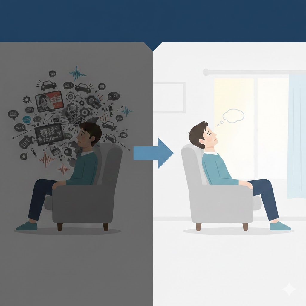情報のインプットを止めて、空っぽの状態にする。脳を休ませるには、何もしない、何も聞かないのが一番の薬かもしれません。