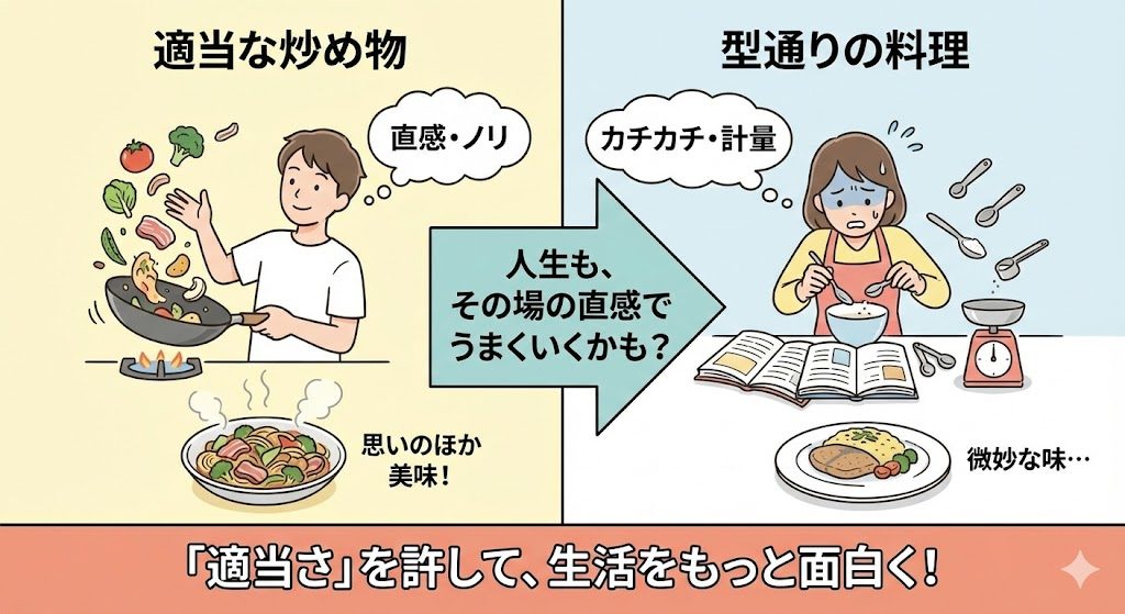 人生も同じで、型通りにカチカチに進めるよりも、その場のノリや直感に任せた方が案外うまくいくことがあるのかもしれません。