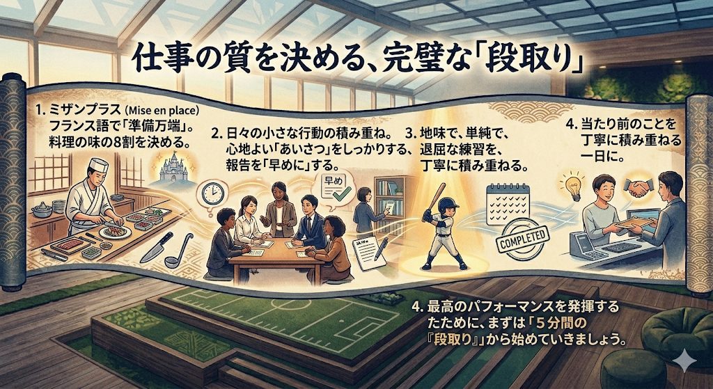 本日は仕事の質を上げる「段取り」について、ある有名な料理人の言葉を借りてお話しします。